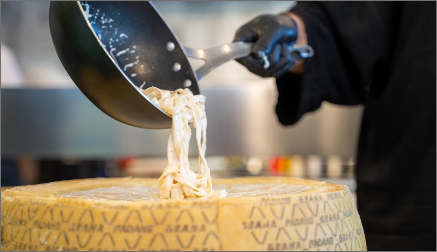 Assiette principale au choix, en Show Cooking dans une meule de Parmesan: